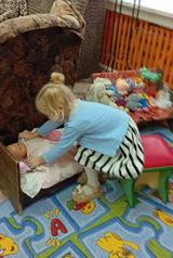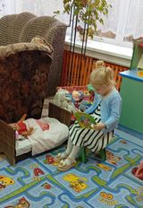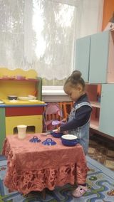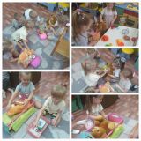 Сюжетно-ролевые игры: «Готовим обед, варим супчик для зверушек», «Накрываем праздничный стол», «Помогаем маме мыть посуду/ помогаем папе чинить игрушки, мастерская папы», «Мама укладывает дочку спать».