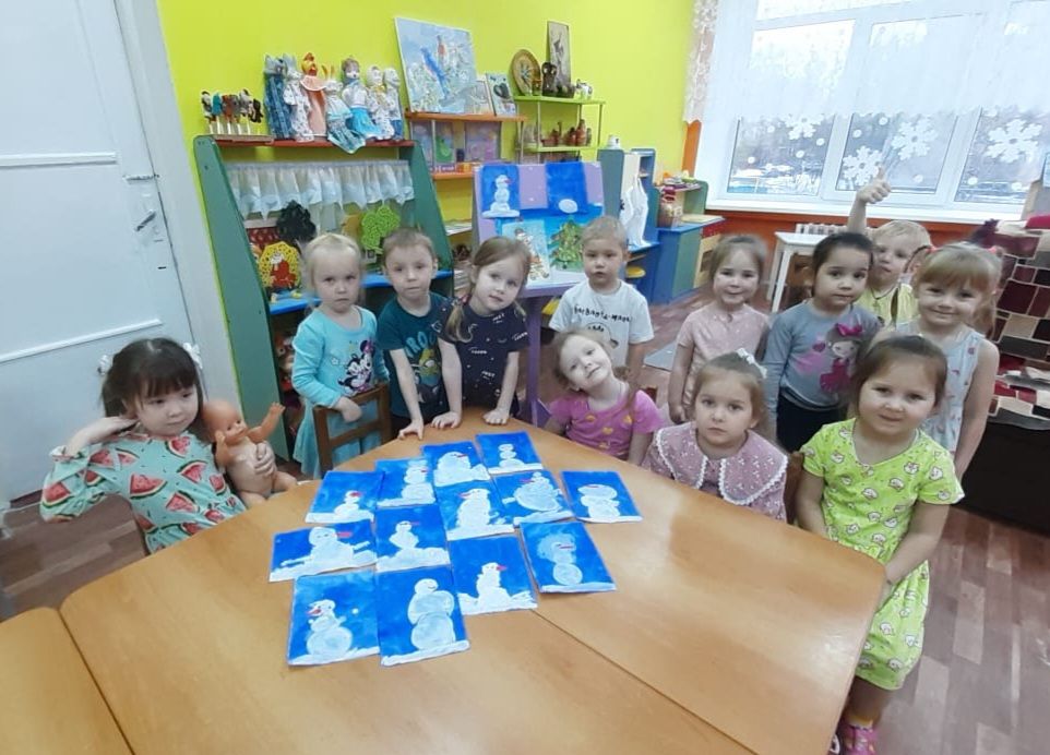 Продуктивная деятельность: рисование гуашевыми красками "Снеговичок", конструирование "Календарь семьи"