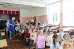 23 сентября 2019 года для воспитанников подготовительных к школе групп учителя МОУ "Средняя школа №5" провели экскурсию. Дети познакомились со школьной жизнью, посетили библиотеку, спортивный зал и конечно не прошли мимо столовой, где попробовали вкусную выпечку и чай.